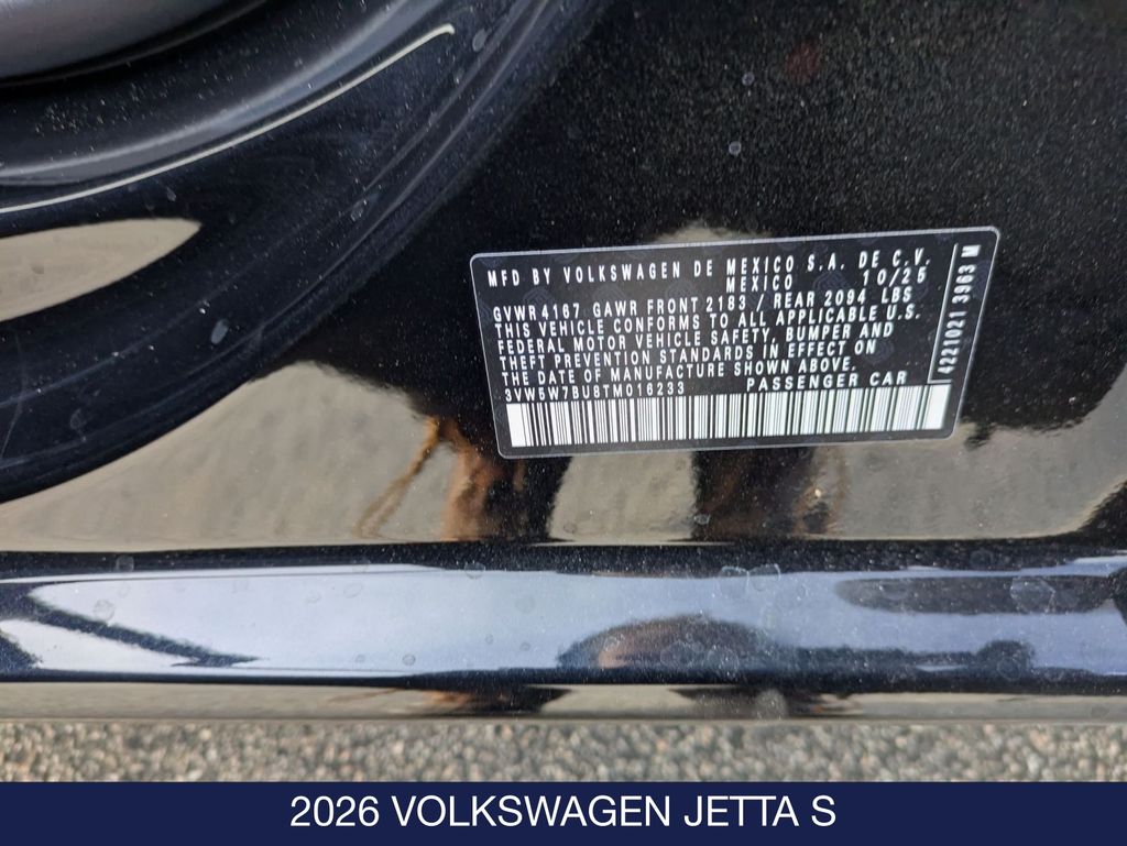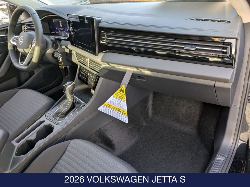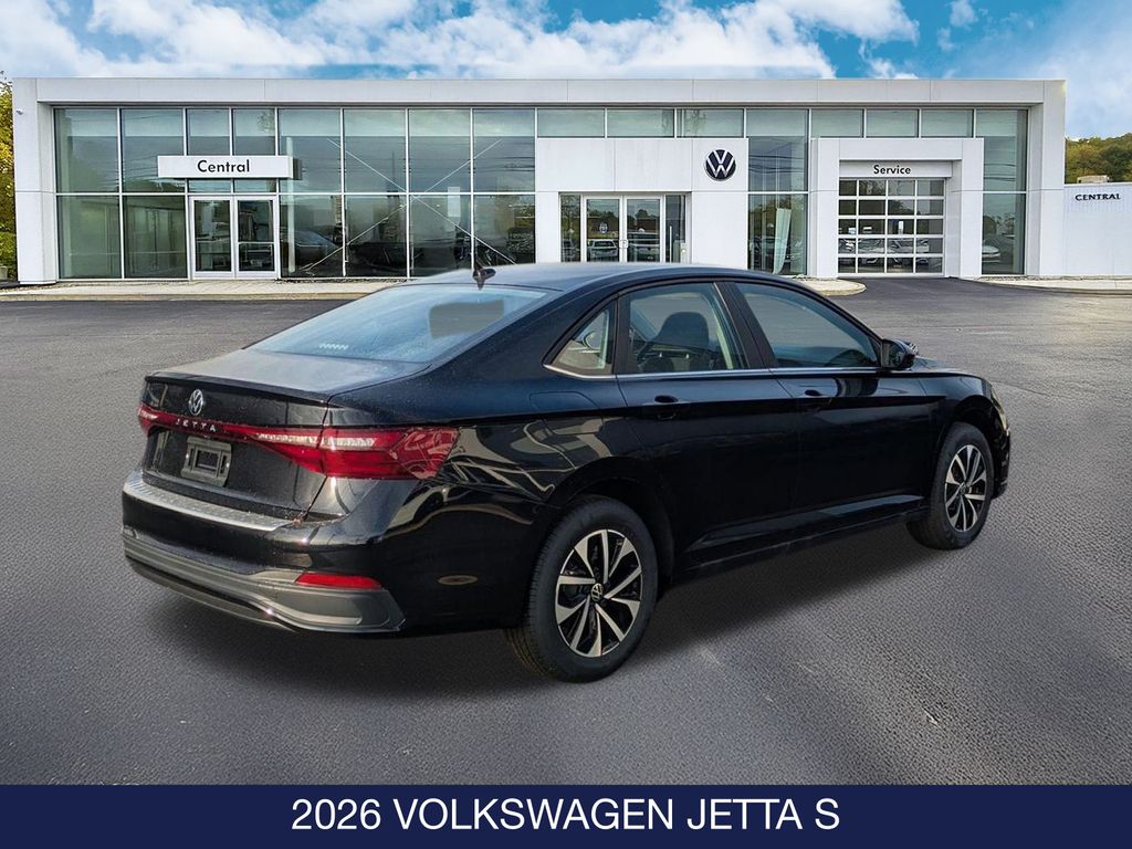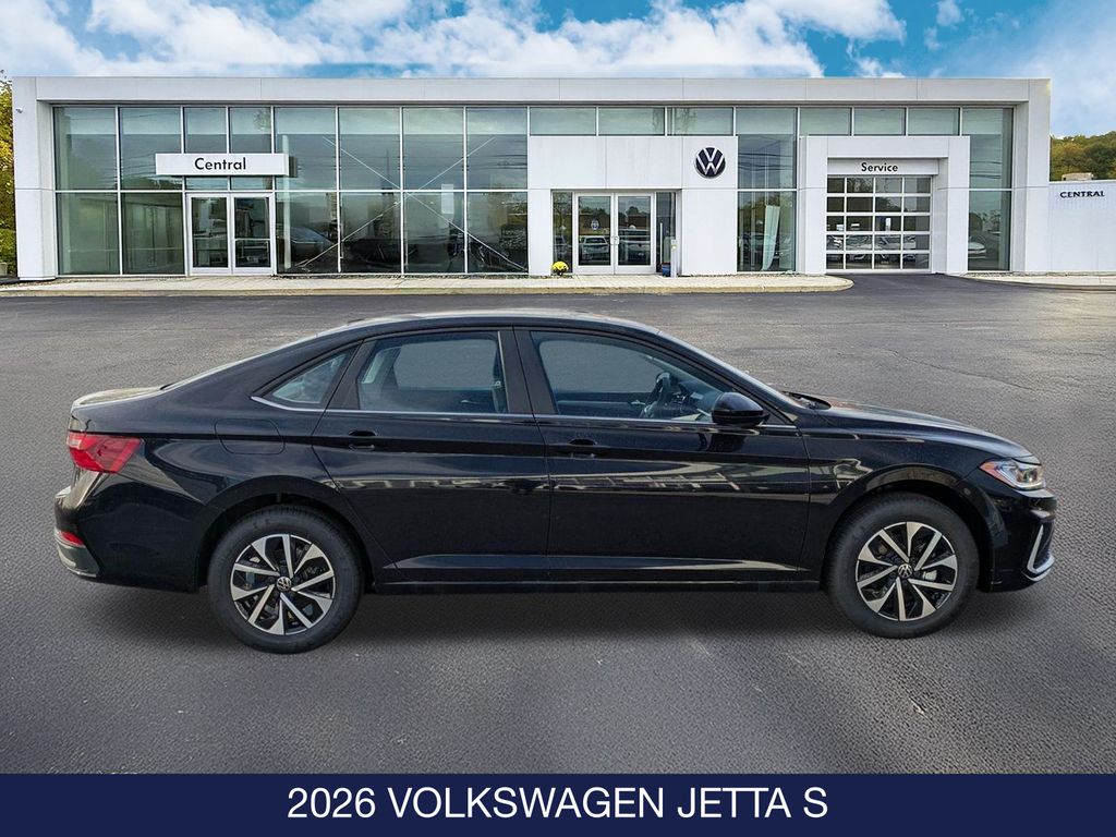 Deep Black Pearl 2026 Volkswagen Jetta 1.5T S FWD 4D Sedan 8-Speed Automatic with Tiptronic 1.5L I-4 DI DOHC Turbocharged 29/40 City/Highway MPG