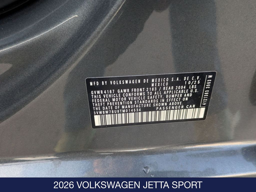 Platinum Gray Metallic 2026 Volkswagen Jetta 1.5T Sport FWD 4D Sedan 8-Speed Automatic with Tiptronic 1.5L I-4 DI DOHC Turbocharged 29/40 City/Highway MPG