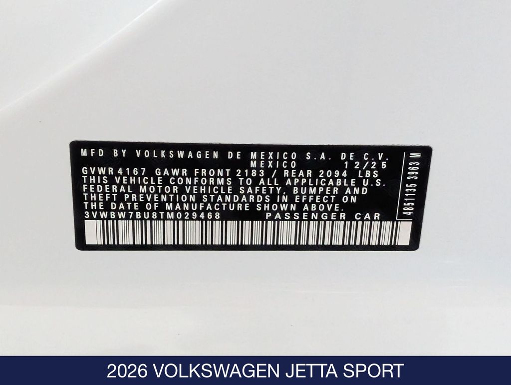 Advertised price does not include applicable taxes, title, registration, or dealer conveyance fee of $759. (negotiable) White 2026 Volkswagen Jetta 1.5T Sport FWD 4D Sedan 8-Speed Automatic with Tiptronic 1.5L I-4 DI DOHC Turbocharged 29/40 City/Highway MPG
