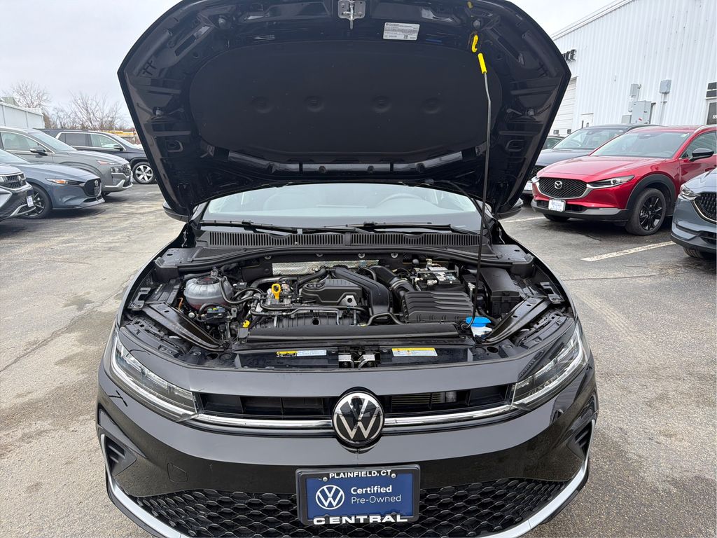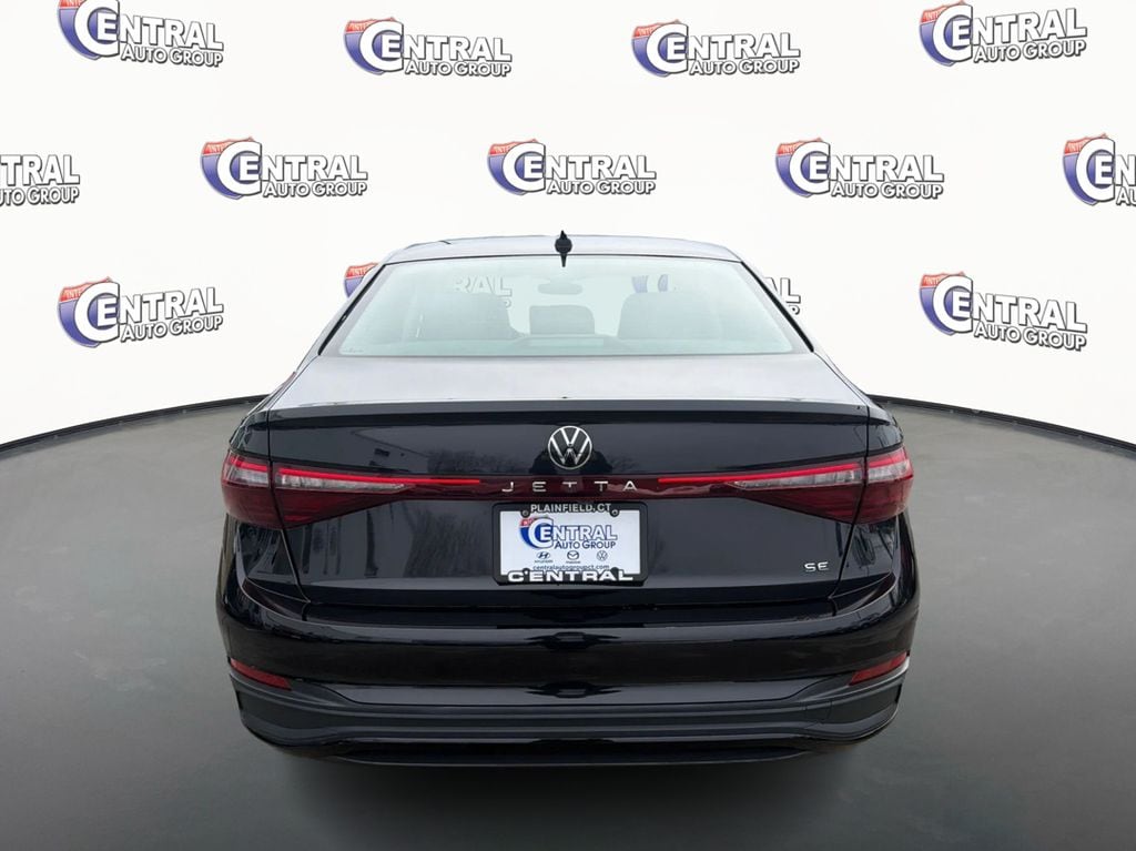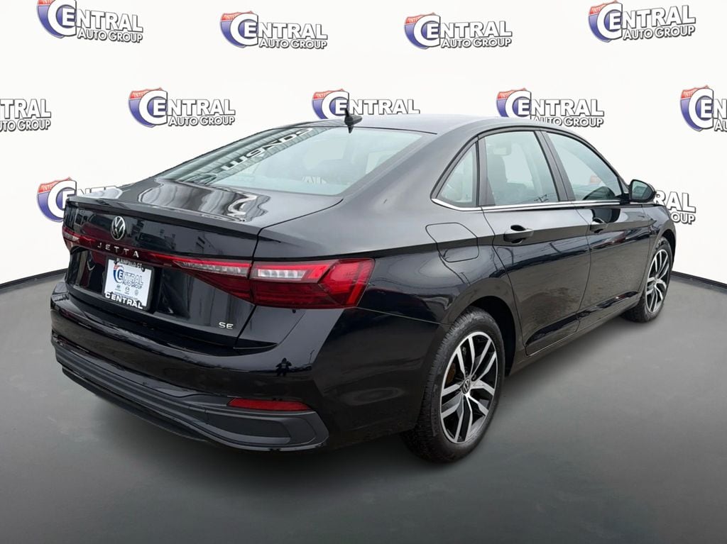 Certified. Deep Black Pearl 2025 Volkswagen Jetta 1.5T SE 4D Sedan FWD 8-Speed Automatic with Tiptronic 1.5L I-4 DI DOHC Turbocharged 29/40 City/Highway MPG